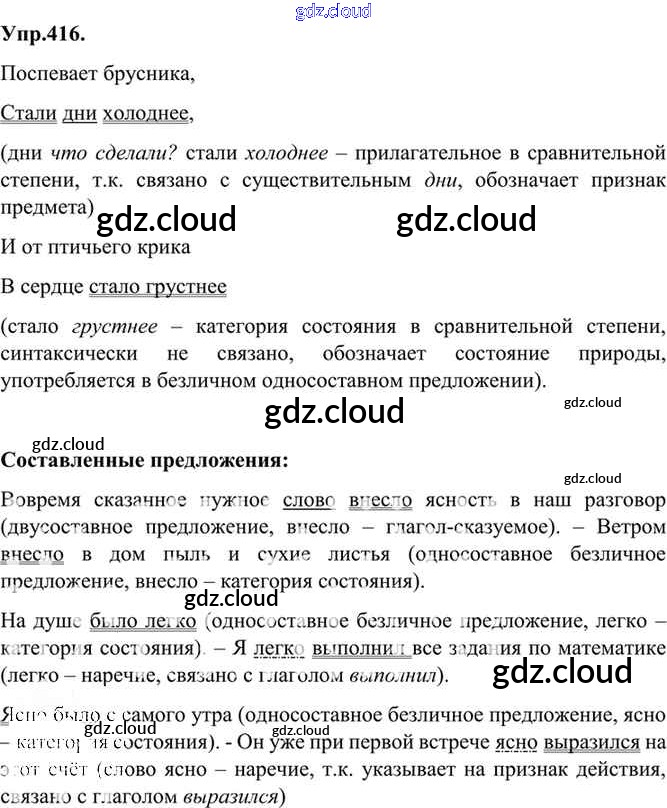 Ответ на задание 416 Учебник Русский язык за 9 (девятый) класс Бархударов, Крючков, Максимов, Чешко 2011, 2019