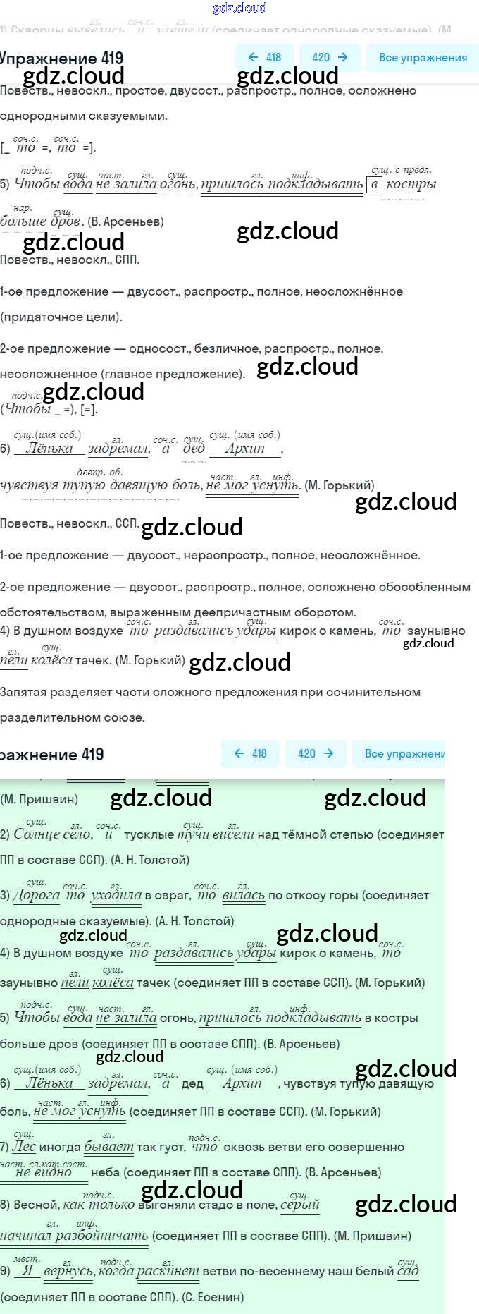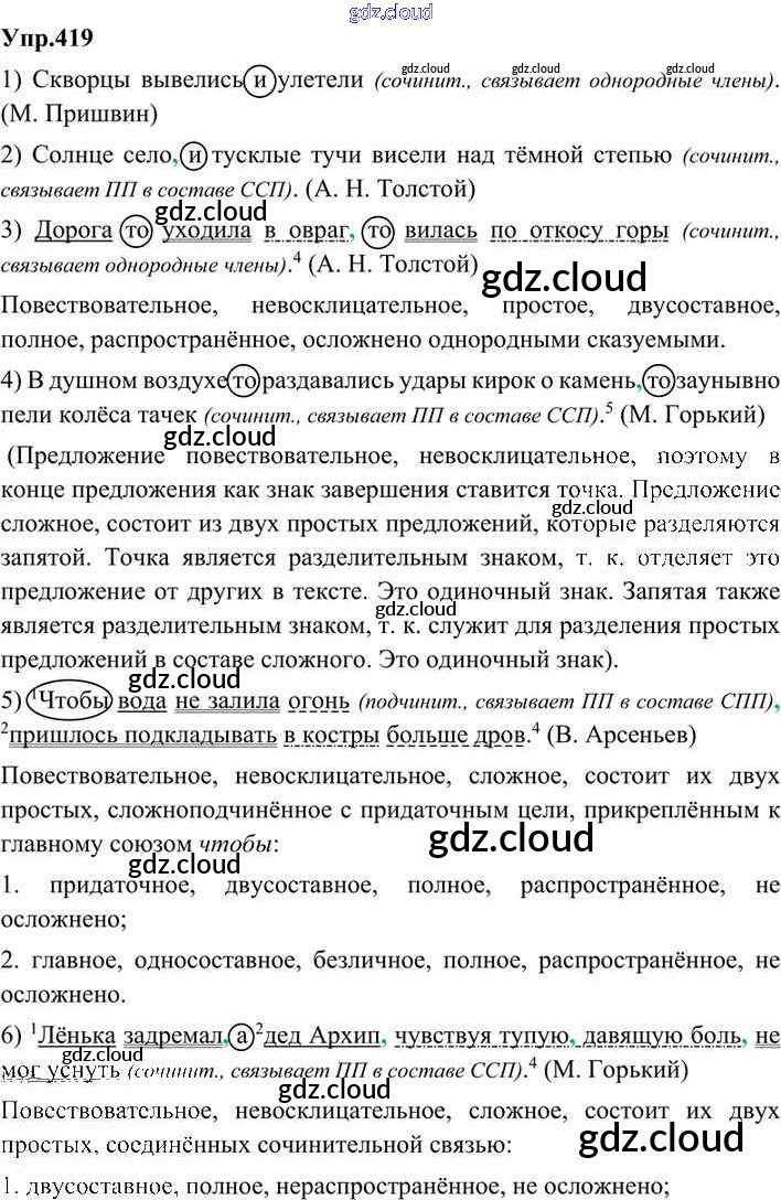 Ответ на задание 419 Учебник Русский язык за 9 (девятый) класс Бархударов, Крючков, Максимов, Чешко 2011, 2019
