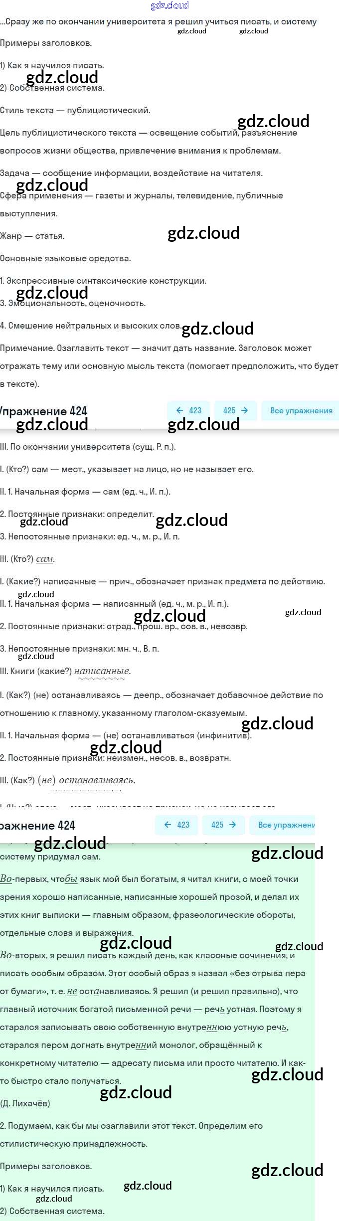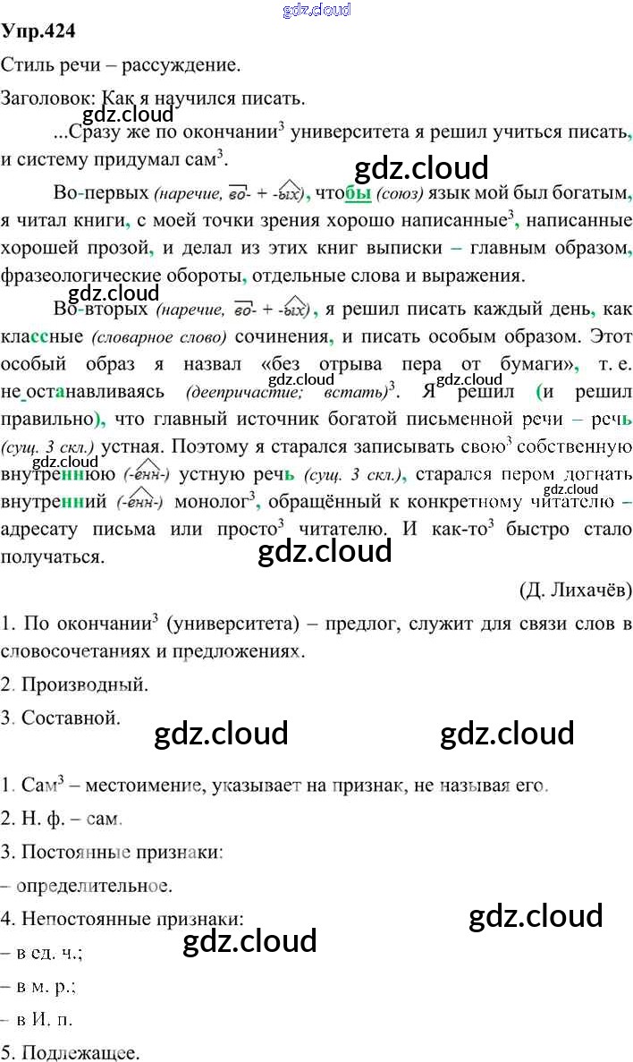 Ответ на задание 424 Учебник Русский язык за 9 (девятый) класс Бархударов, Крючков, Максимов, Чешко 2011, 2019