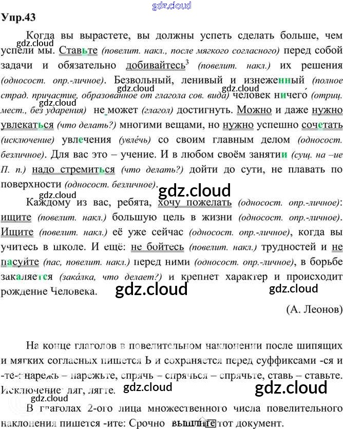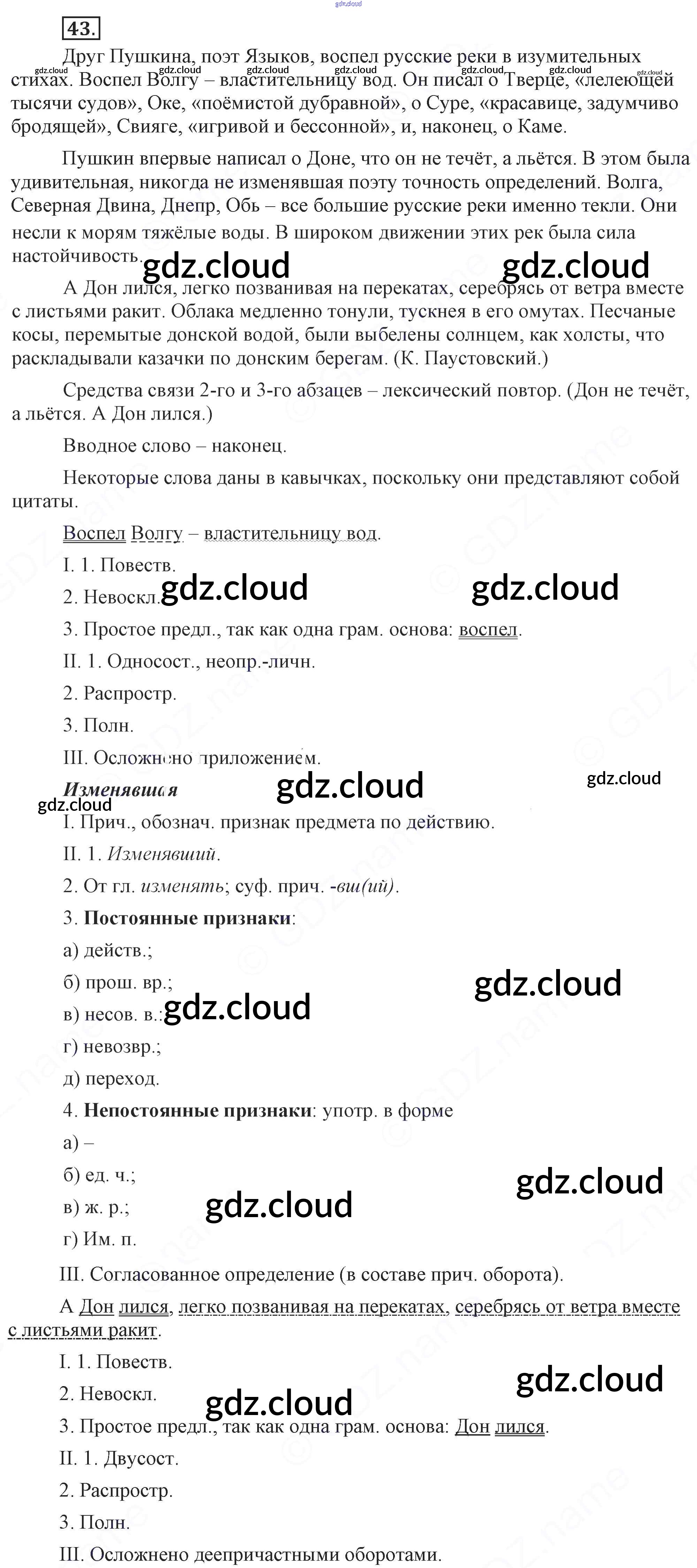 Ответ на задание 43 Учебник Русский язык за 9 (девятый) класс Бархударов, Крючков, Максимов, Чешко 2011, 2019