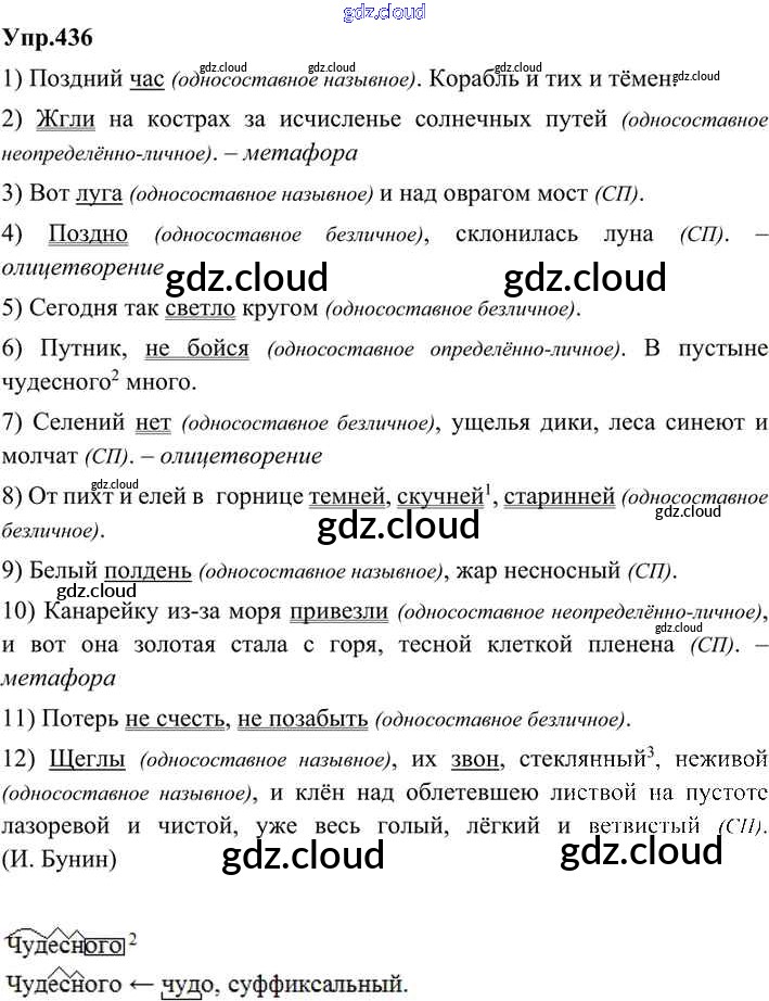 Ответ на задание 436 Учебник Русский язык за 9 (девятый) класс Бархударов, Крючков, Максимов, Чешко 2011, 2019