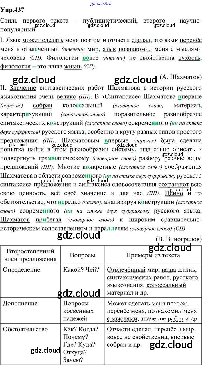 Ответ на задание 437 Учебник Русский язык за 9 (девятый) класс Бархударов, Крючков, Максимов, Чешко 2011, 2019
