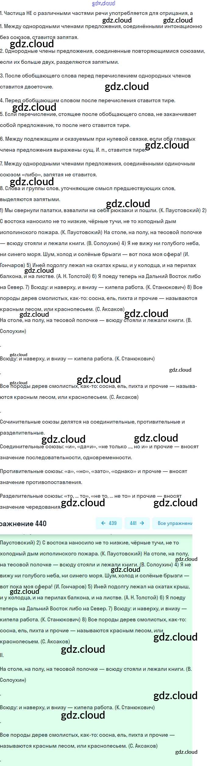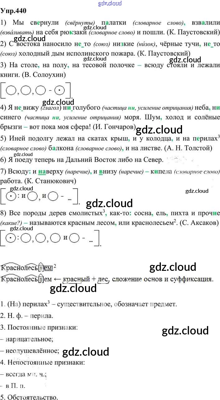 Ответ на задание 440 Учебник Русский язык за 9 (девятый) класс Бархударов, Крючков, Максимов, Чешко 2011, 2019
