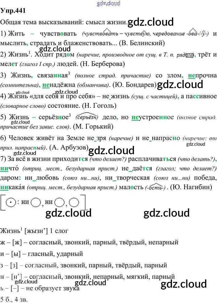 Ответ на задание 441 Учебник Русский язык за 9 (девятый) класс Бархударов, Крючков, Максимов, Чешко 2011, 2019