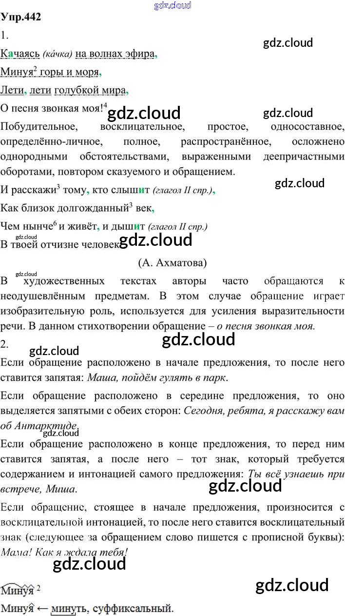 Ответ на задание 442 Учебник Русский язык за 9 (девятый) класс Бархударов, Крючков, Максимов, Чешко 2011, 2019