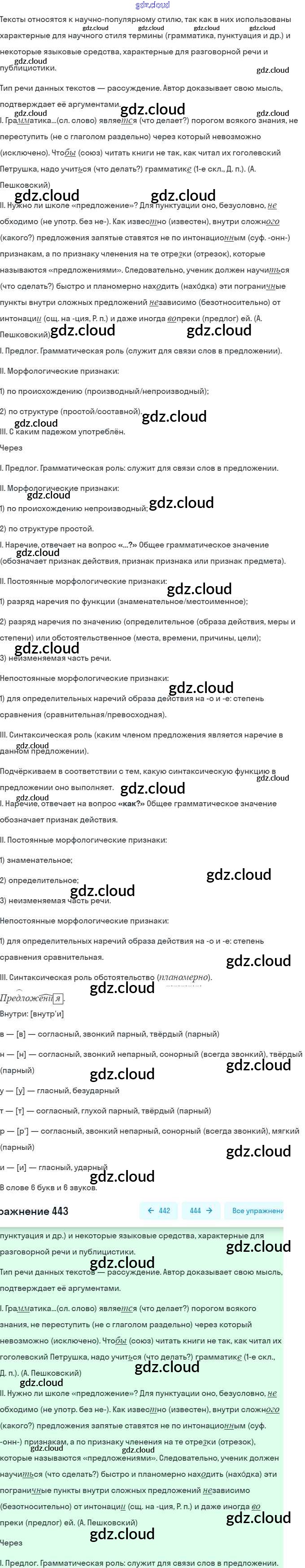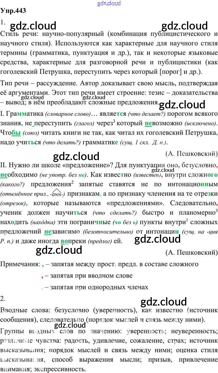 Ответ на задание 443 Учебник Русский язык за 9 (девятый) класс Бархударов, Крючков, Максимов, Чешко 2011, 2019