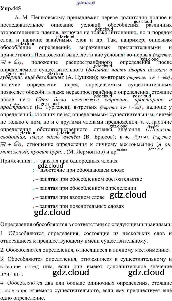 Ответ на задание 445 Учебник Русский язык за 9 (девятый) класс Бархударов, Крючков, Максимов, Чешко 2011, 2019