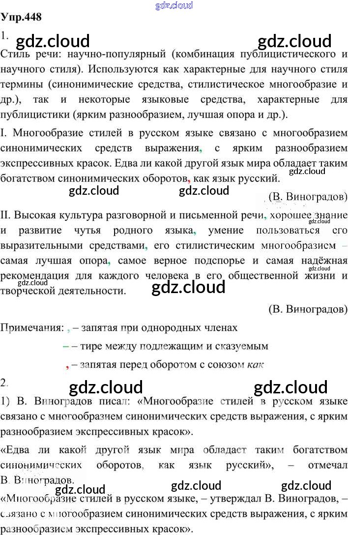 Ответ на задание 448 Учебник Русский язык за 9 (девятый) класс Бархударов, Крючков, Максимов, Чешко 2011, 2019