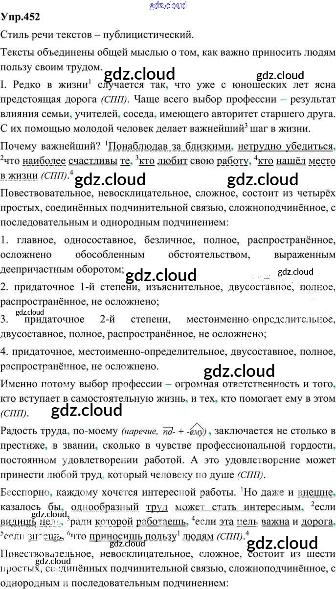 Ответ на задание 452 Учебник Русский язык за 9 (девятый) класс Бархударов, Крючков, Максимов, Чешко 2011, 2019
