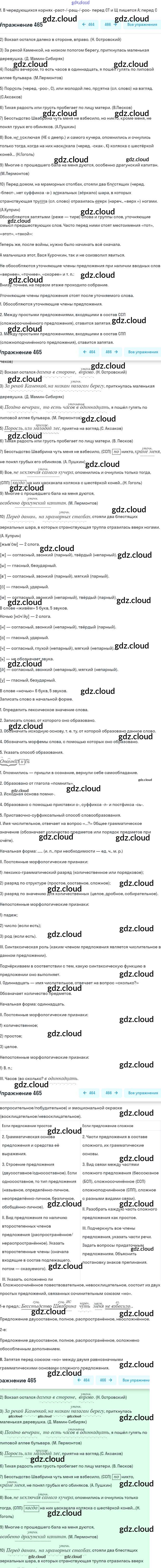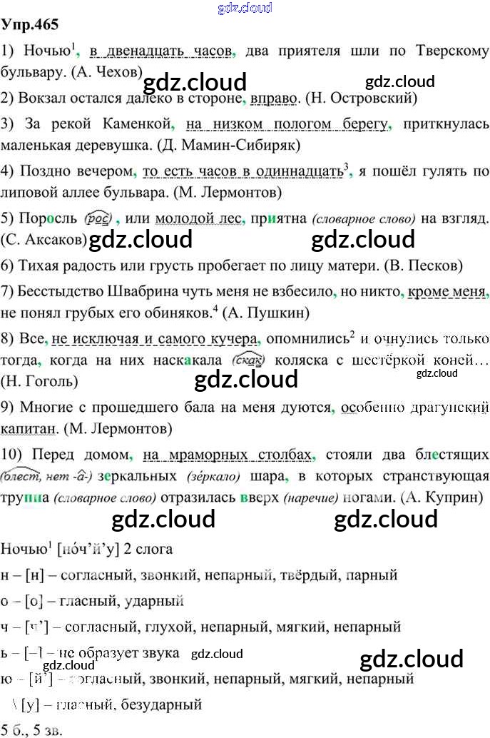 Ответ на задание 465 Учебник Русский язык за 9 (девятый) класс Бархударов, Крючков, Максимов, Чешко 2011, 2019