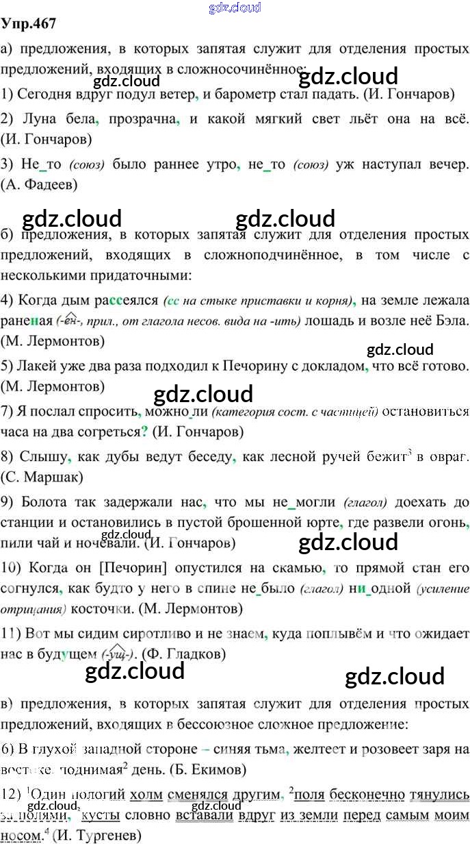 Ответ на задание 467 Учебник Русский язык за 9 (девятый) класс Бархударов, Крючков, Максимов, Чешко 2011, 2019