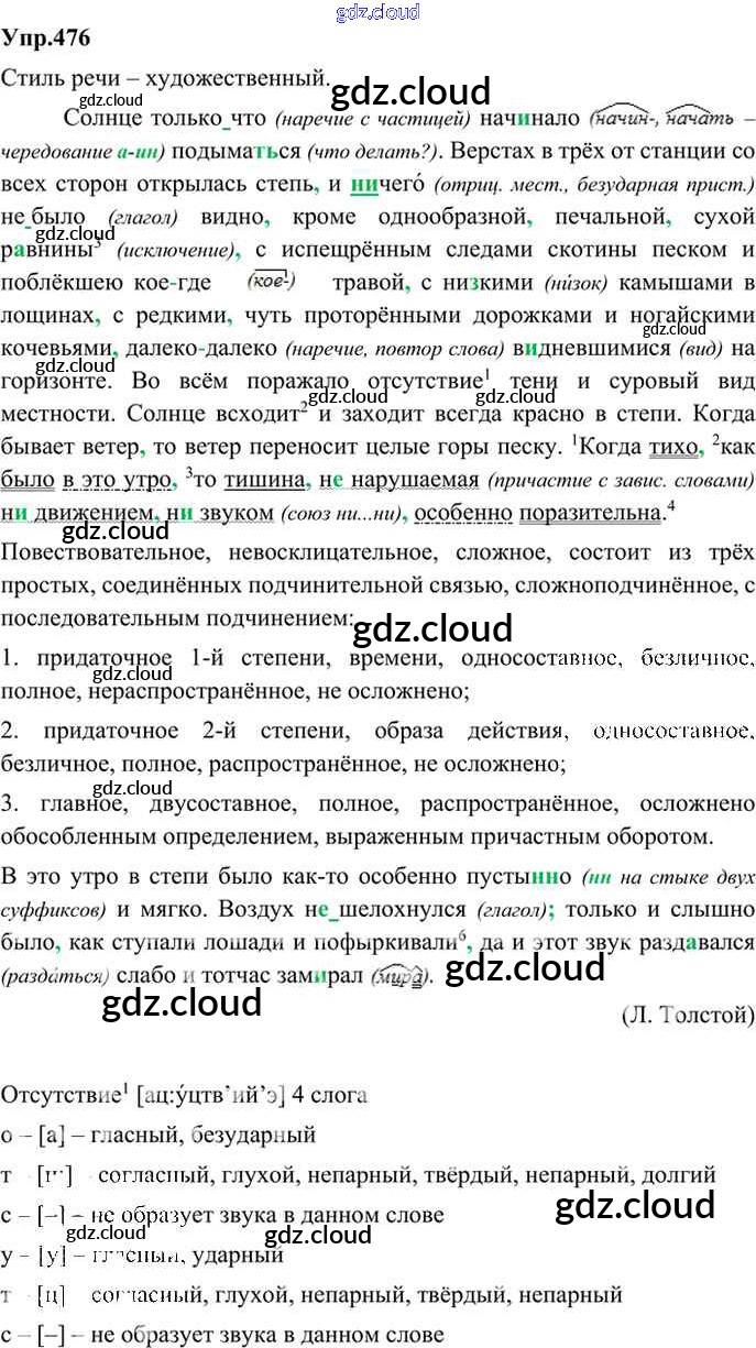Ответ на задание 476 Учебник Русский язык за 9 (девятый) класс Бархударов, Крючков, Максимов, Чешко 2011, 2019