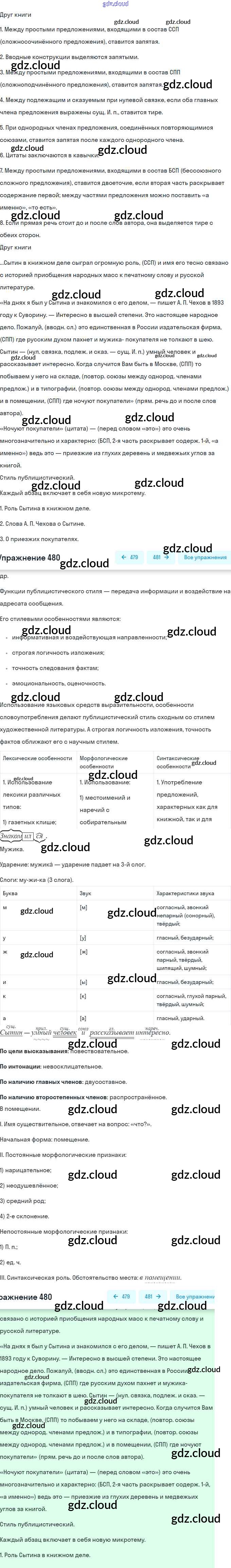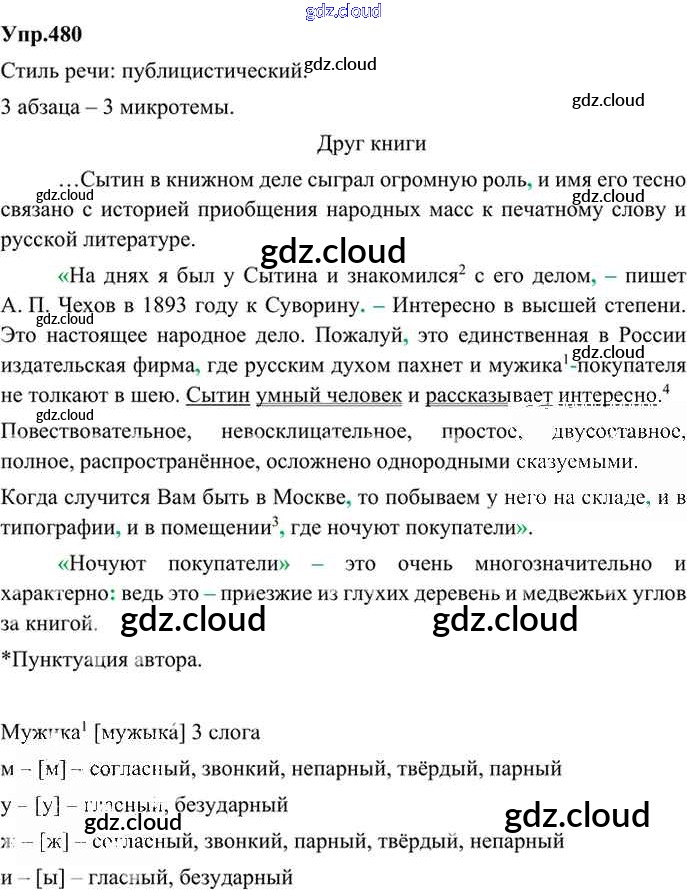 Ответ на задание 480 Учебник Русский язык за 9 (девятый) класс Бархударов, Крючков, Максимов, Чешко 2011, 2019