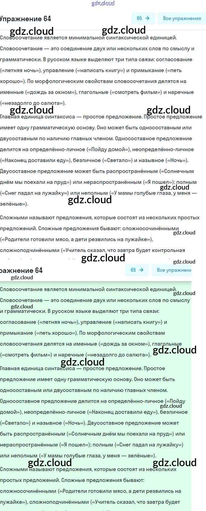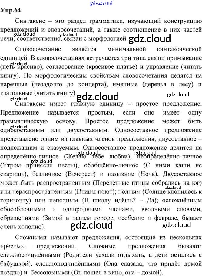 Ответ на задание 64 Учебник Русский язык за 9 (девятый) класс Бархударов, Крючков, Максимов, Чешко 2011, 2019