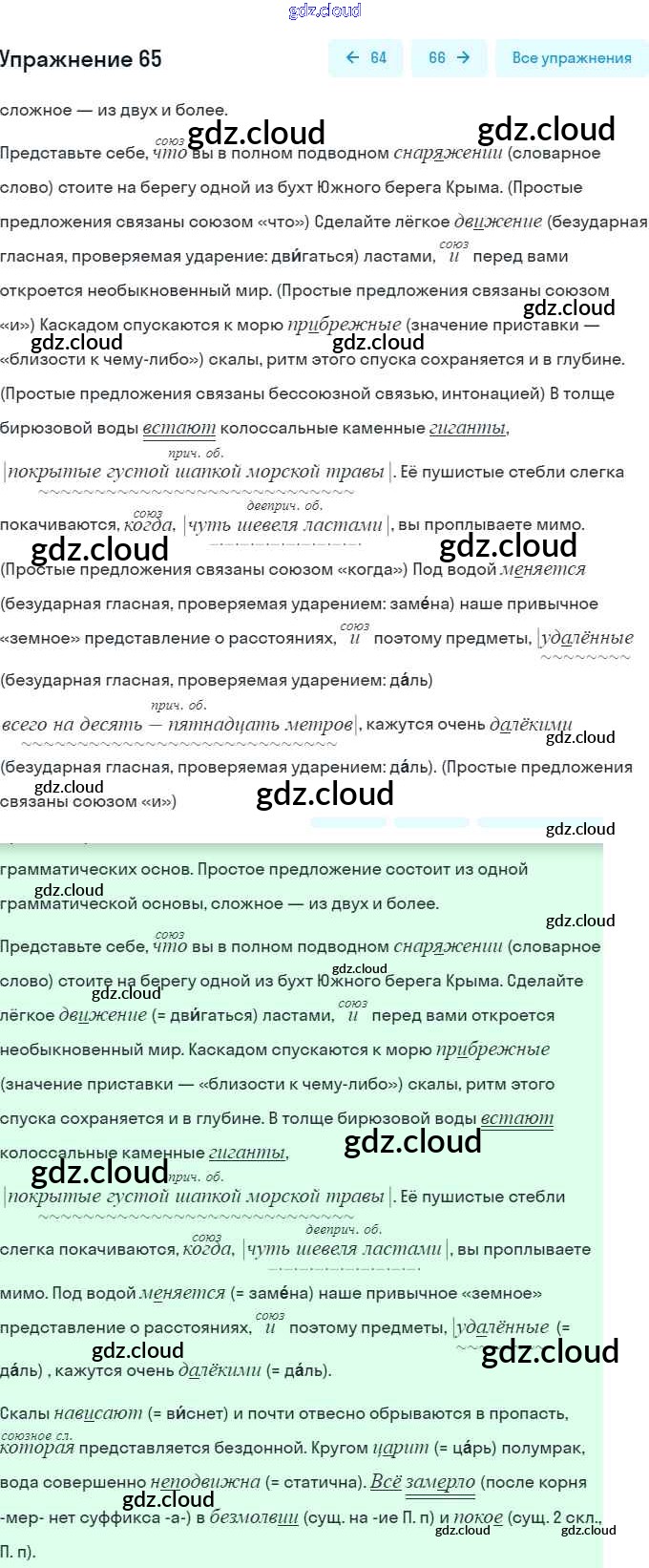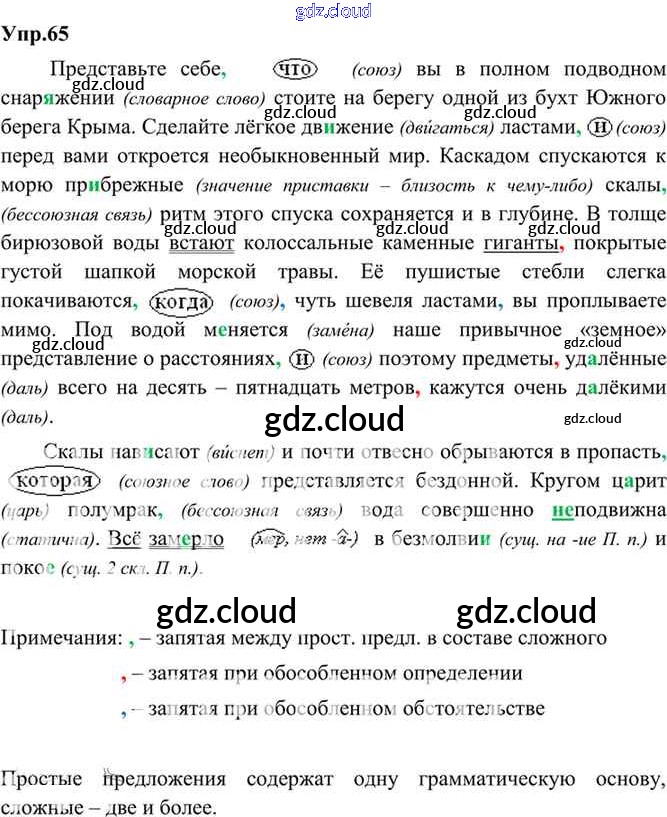 Ответ на задание 65 Учебник Русский язык за 9 (девятый) класс Бархударов, Крючков, Максимов, Чешко 2011, 2019