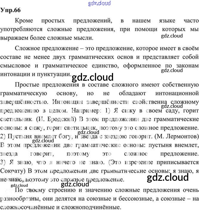 Ответ на задание 66 Учебник Русский язык за 9 (девятый) класс Бархударов, Крючков, Максимов, Чешко 2011, 2019