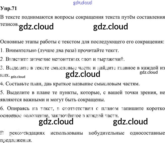 Ответ на задание 71 Учебник Русский язык за 9 (девятый) класс Бархударов, Крючков, Максимов, Чешко 2011, 2019