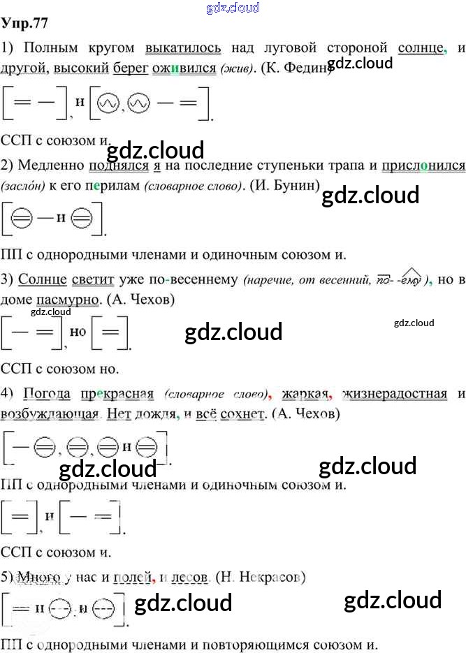 Ответ на задание 77 Учебник Русский язык за 9 (девятый) класс Бархударов, Крючков, Максимов, Чешко 2011, 2019