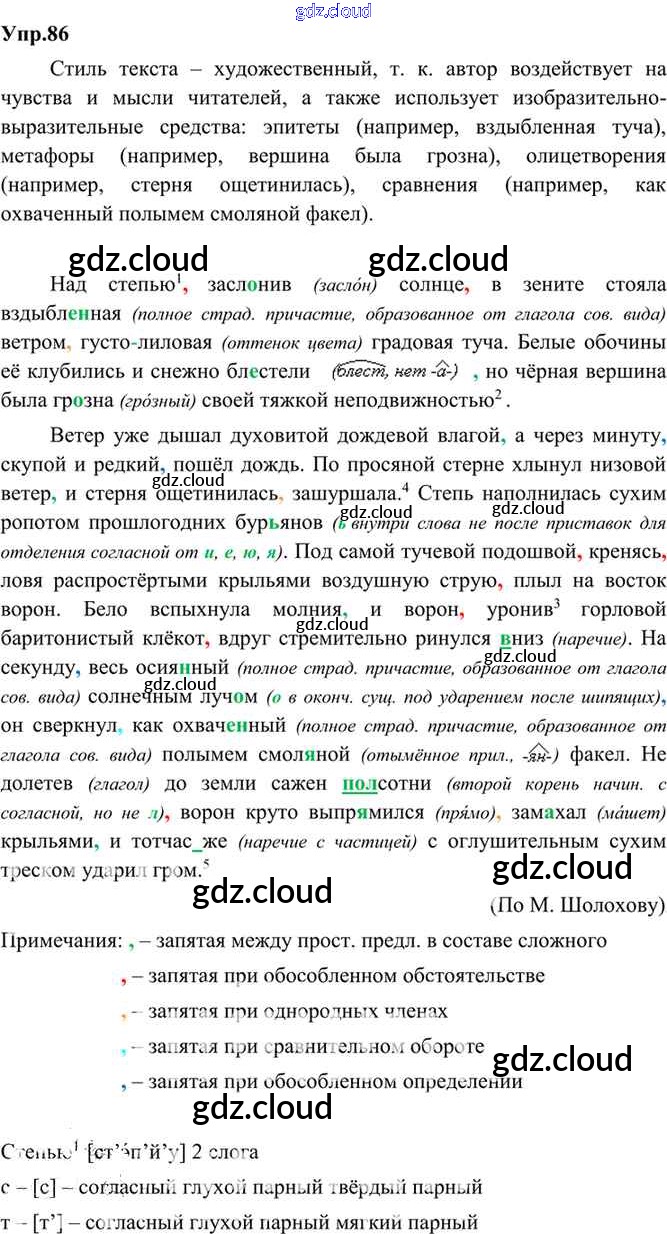Ответ на задание 86 Учебник Русский язык за 9 (девятый) класс Бархударов, Крючков, Максимов, Чешко 2011, 2019
