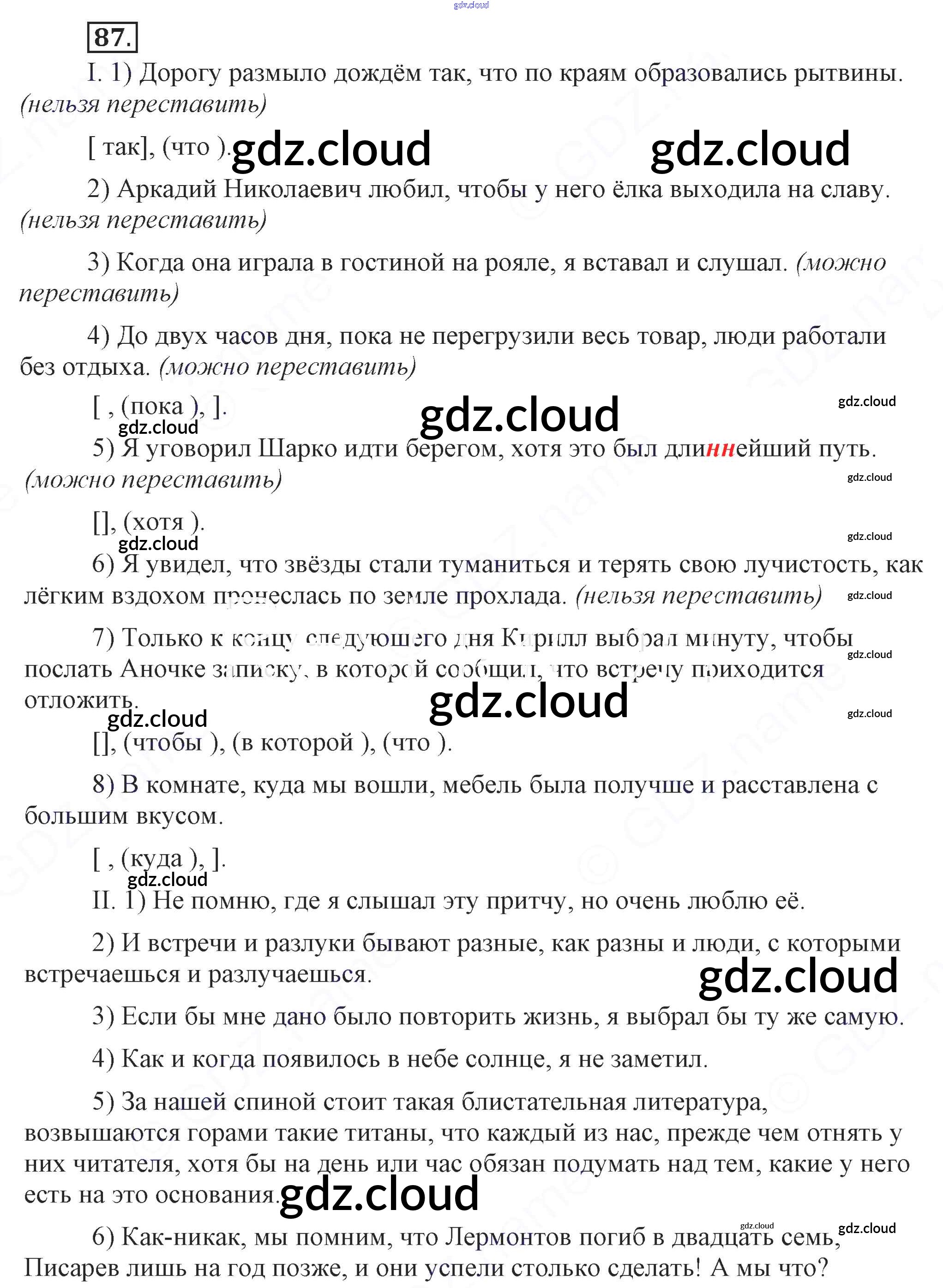 Ответ на задание 87 Учебник Русский язык за 9 (девятый) класс Бархударов, Крючков, Максимов, Чешко 2011, 2019