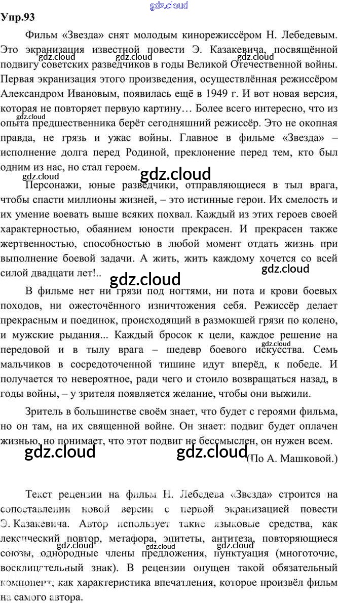 Ответ на задание 93 Учебник Русский язык за 9 (девятый) класс Бархударов, Крючков, Максимов, Чешко 2011, 2019