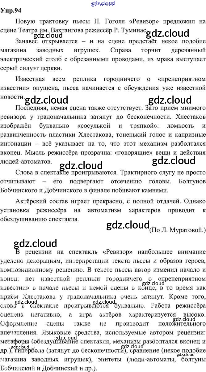 Ответ на задание 94 Учебник Русский язык за 9 (девятый) класс Бархударов, Крючков, Максимов, Чешко 2011, 2019