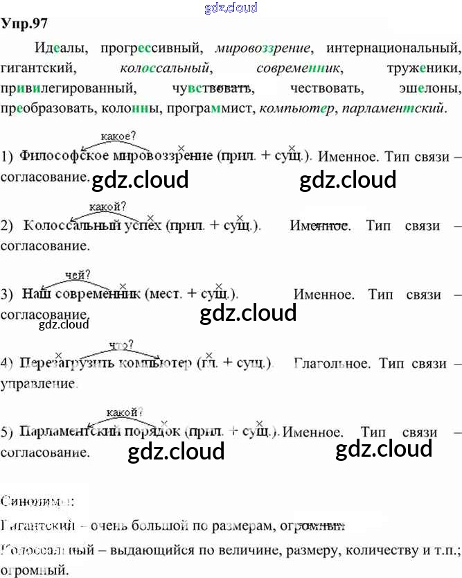 Ответ на задание 97 Учебник Русский язык за 9 (девятый) класс Бархударов, Крючков, Максимов, Чешко 2011, 2019
