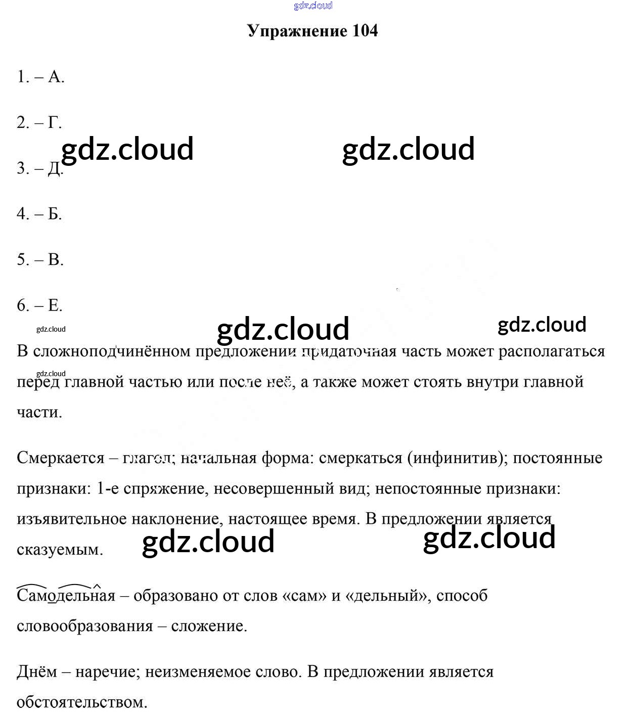 Ответ на задание 104 Учебник Русский язык за 9 (девятый) класс Мурина, Литвинко, Долбик 2011 ФГОС онлайн и без номера телефона.