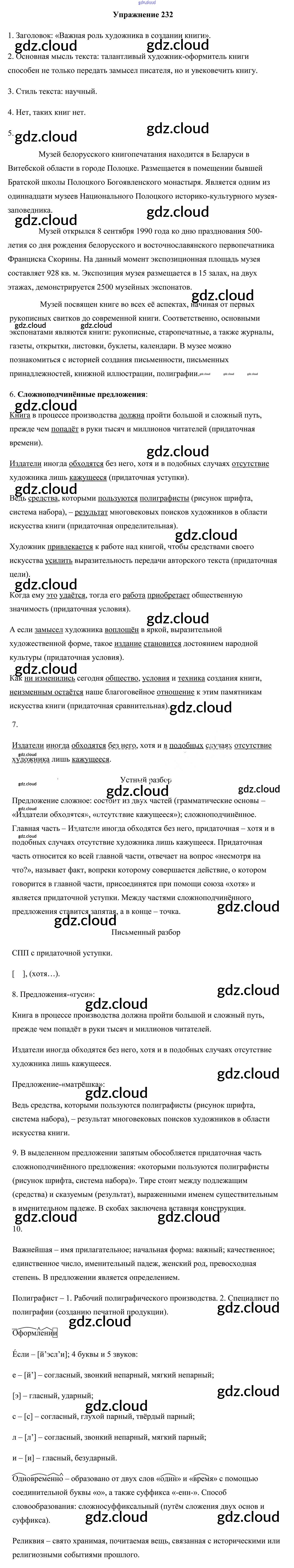 Ответ на задание 232 Учебник Русский язык за 9 (девятый) класс Мурина, Литвинко, Долбик 2011 ФГОС онлайн и без номера телефона.