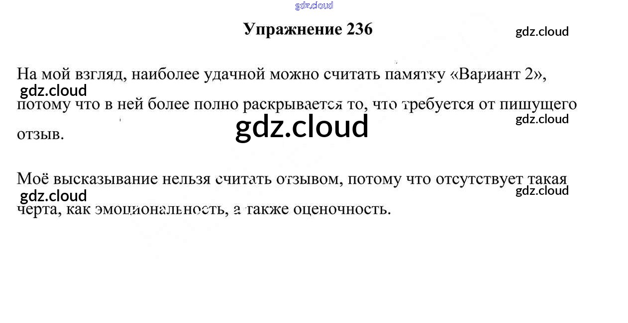 Ответ на задание 236 Учебник Русский язык за 9 (девятый) класс Мурина, Литвинко, Долбик 2011 ФГОС онлайн и без номера телефона.