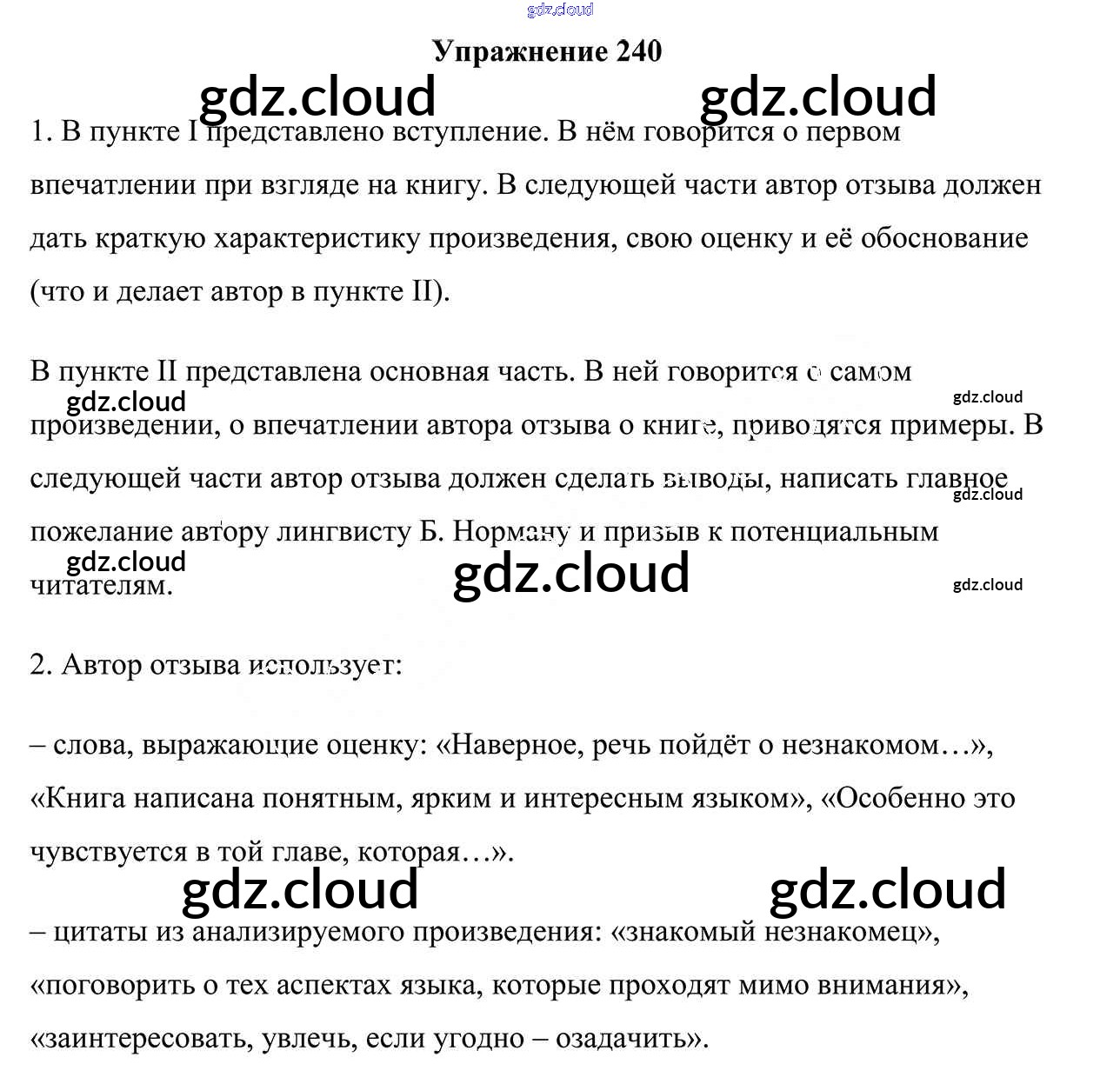 Ответ на задание 240 Учебник Русский язык за 9 (девятый) класс Мурина, Литвинко, Долбик 2011 ФГОС онлайн и без номера телефона.