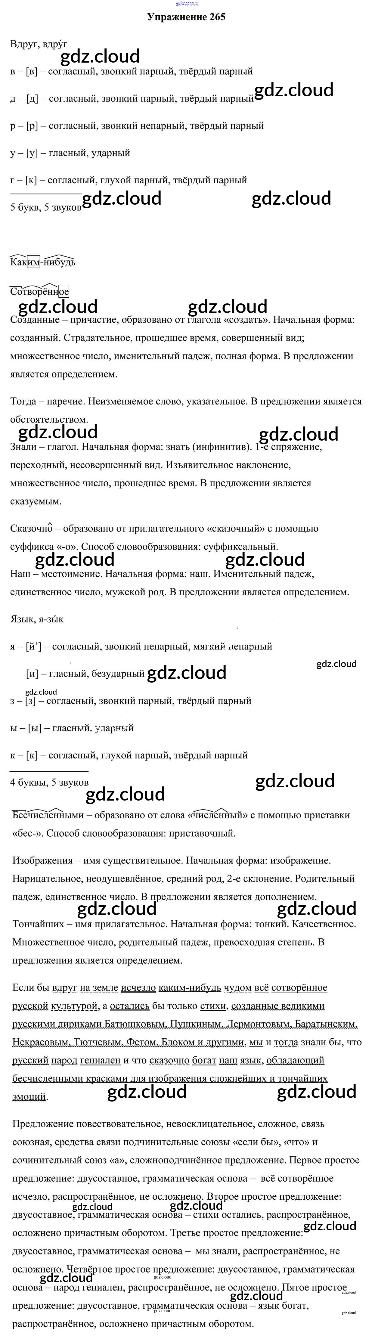 Ответ на задание 265 Учебник Русский язык за 9 (девятый) класс Мурина, Литвинко, Долбик 2011 ФГОС онлайн и без номера телефона.