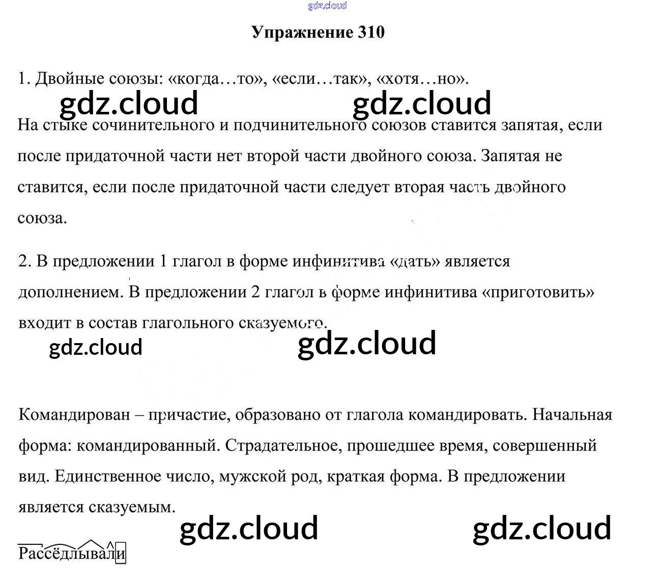 Ответ на задание 310 Учебник Русский язык за 9 (девятый) класс Мурина, Литвинко, Долбик 2011 ФГОС онлайн и без номера телефона.
