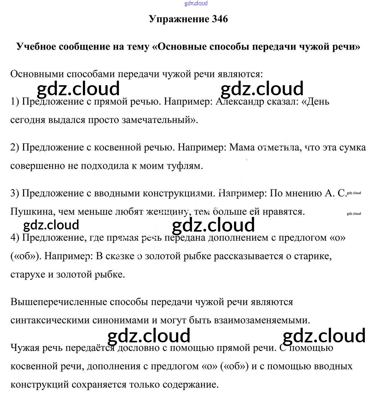 Ответ на задание 346 Учебник Русский язык за 9 (девятый) класс Мурина, Литвинко, Долбик 2011 ФГОС онлайн и без номера телефона.