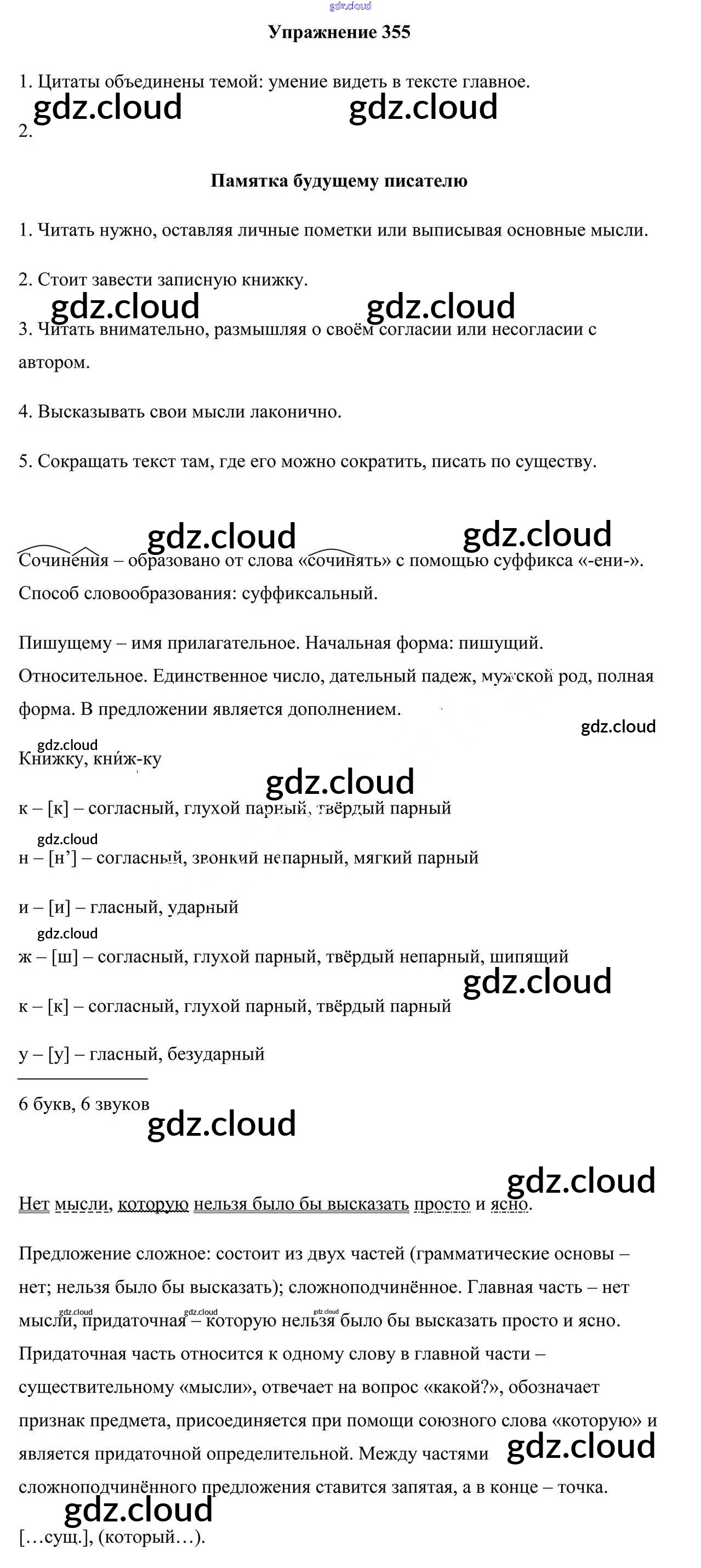 Ответ на задание 355 Учебник Русский язык за 9 (девятый) класс Мурина, Литвинко, Долбик 2011 ФГОС онлайн и без номера телефона.