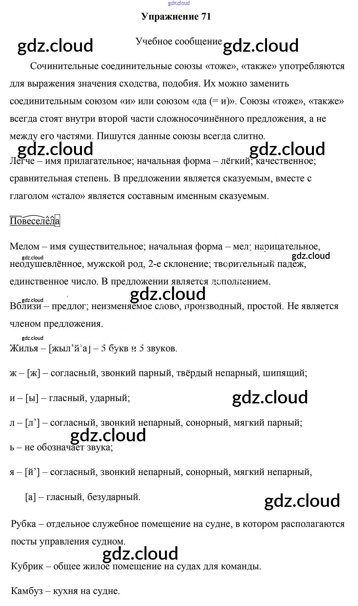 Ответ на задание 71 Учебник Русский язык за 9 (девятый) класс Мурина, Литвинко, Долбик 2011 ФГОС онлайн и без номера телефона.
