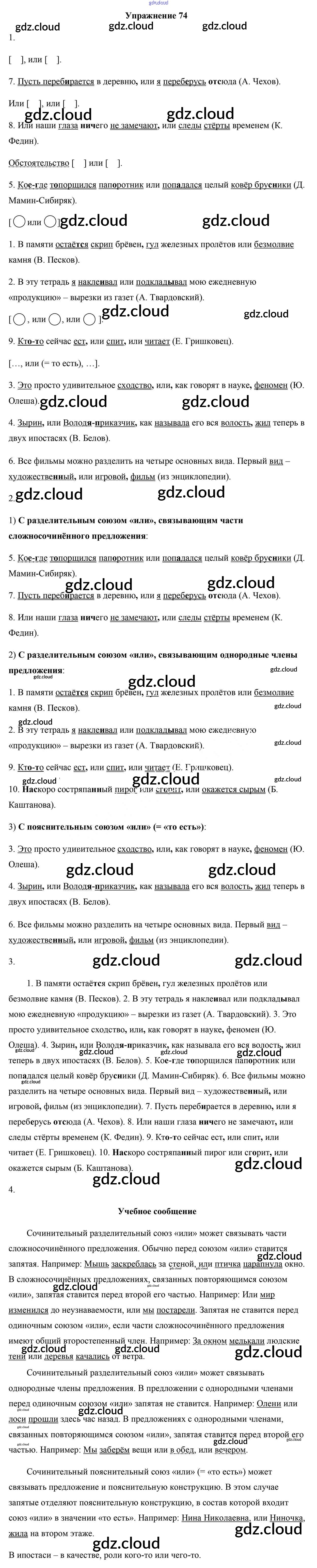 Ответ на задание 74 Учебник Русский язык за 9 (девятый) класс Мурина, Литвинко, Долбик 2011 ФГОС онлайн и без номера телефона.