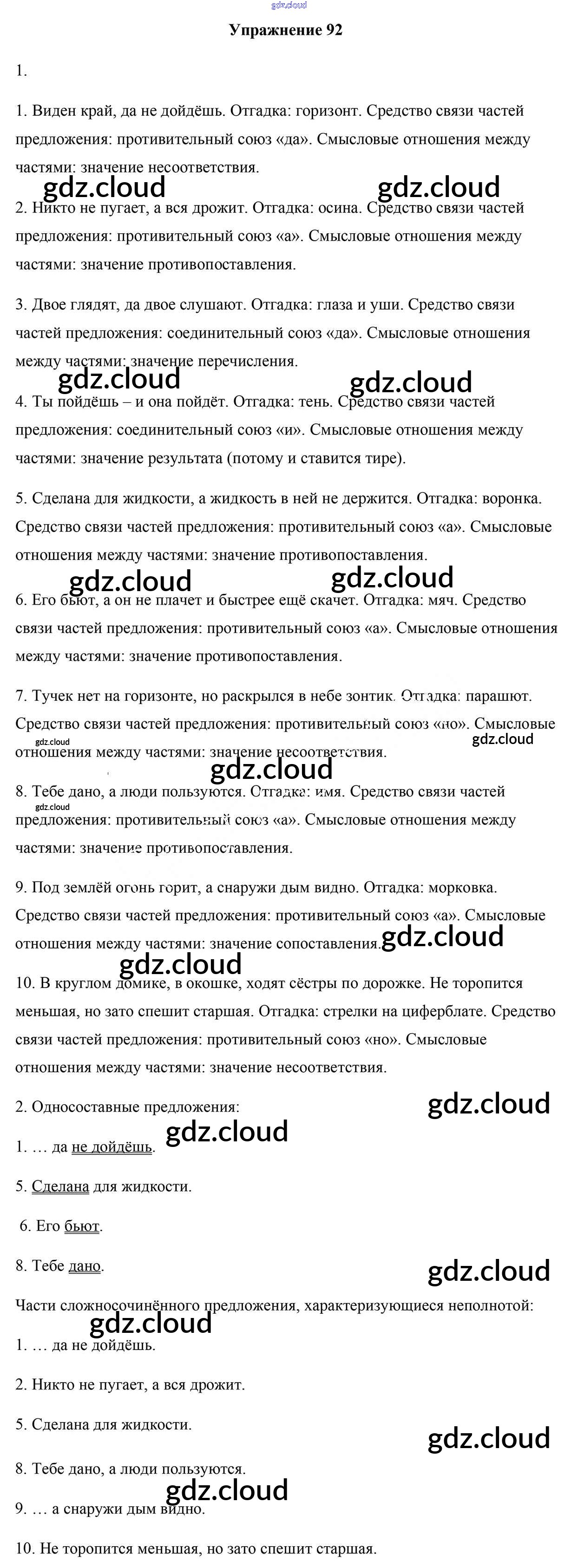 Ответ на задание 92 Учебник Русский язык за 9 (девятый) класс Мурина, Литвинко, Долбик 2011 ФГОС онлайн и без номера телефона.