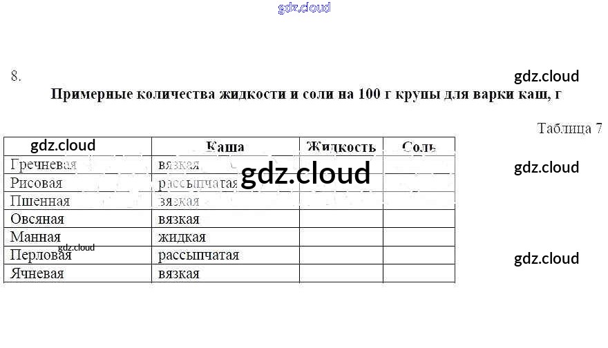 Блюда из круп и бобовых Ответы к теме: Кулинария по Технологии 6 класс Рабочая тетрадь Кожина Дрофа
