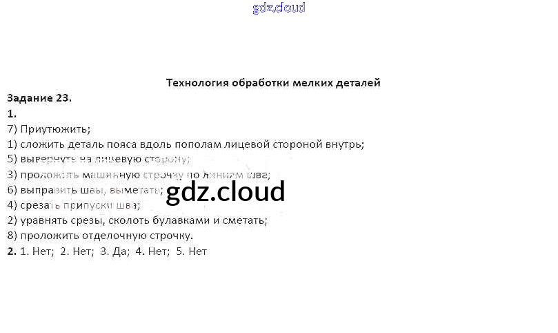 Ответ на задание 23 Рабочая тетрадь Технология за 6 (шестой) класс Синица Алгоритм успеха 2019 ФГОС онлайн и без номера телефона.