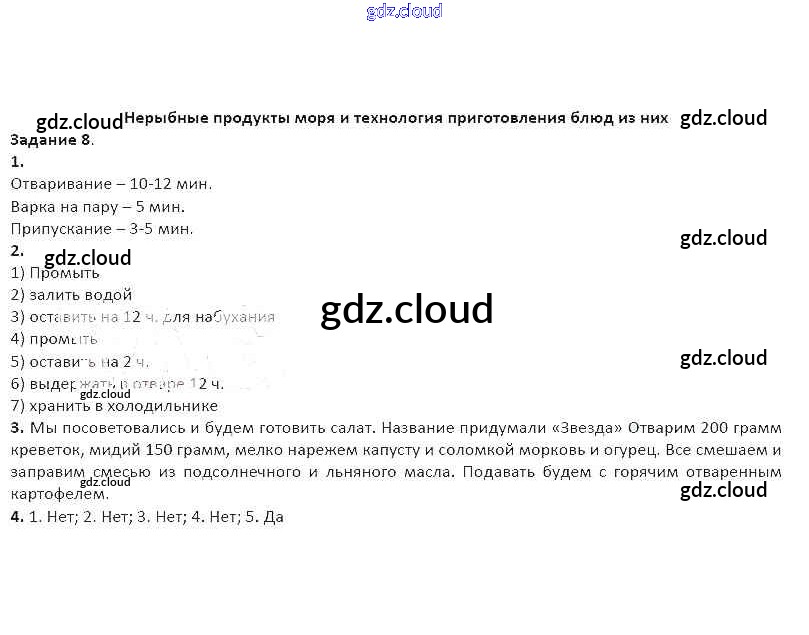 Ответ на задание 8 Рабочая тетрадь Технология за 6 (шестой) класс Синица Алгоритм успеха 2019 ФГОС онлайн и без номера телефона.