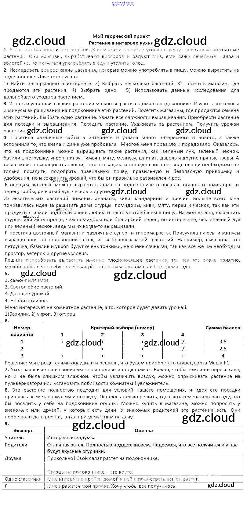 Ответы к творческим проектам по Технологии 6 класс Рабочая тетрадь Синица Алгоритм успеха Вентана-граф