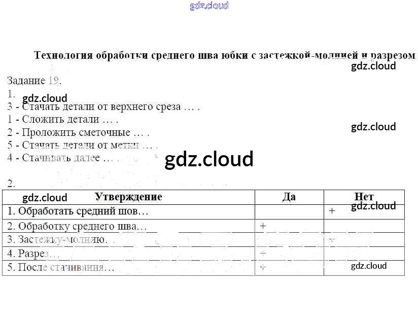 Ответ на задание 19 Рабочая тетрадь Технология за 7 (седьмой) класс Синица Алгоритм успеха 2018 ФГОС онлайн и без номера телефона.