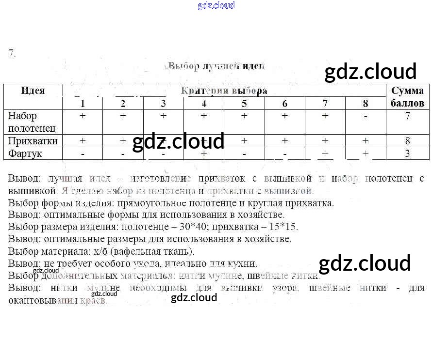 Ответ на задание 7 Рабочая тетрадь Технология за 7 (седьмой) класс Синица Алгоритм успеха 2018 ФГОС онлайн и без номера телефона.