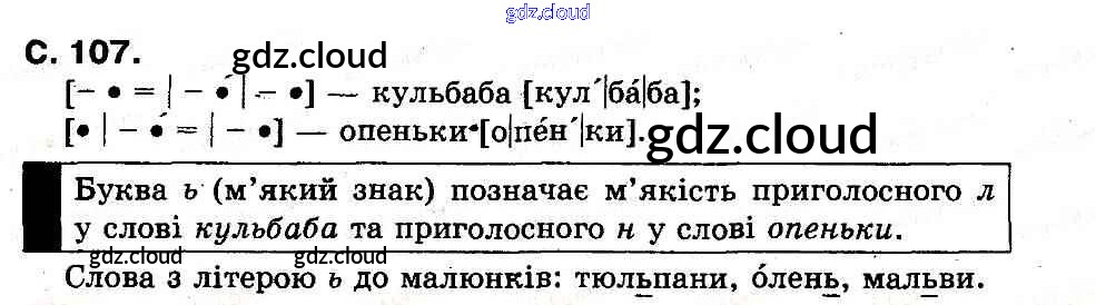 Ответ на задание 107 Букварь Украинский язык за 1 (первый) класс Захарийчук, Науменко 2012 онлайн и без номера телефона.