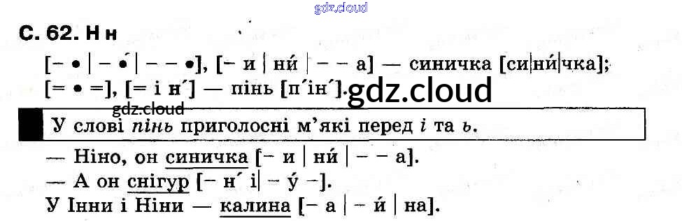 Ответ на задание 62 Букварь Украинский язык за 1 (первый) класс Захарийчук, Науменко 2012 онлайн и без номера телефона.