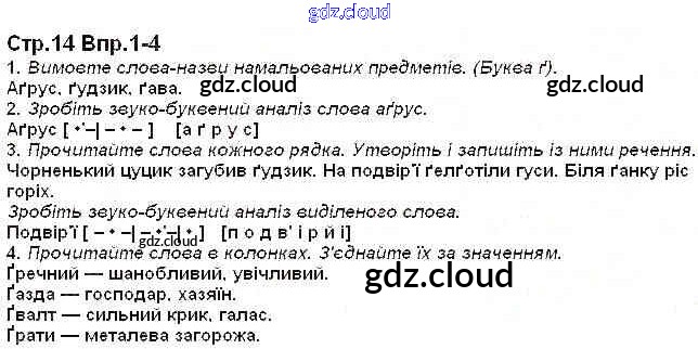 Ответ на задание 14 Учебник Украинский язык за 1 (первый) класс Захарийчук 2012 онлайн и без номера телефона.