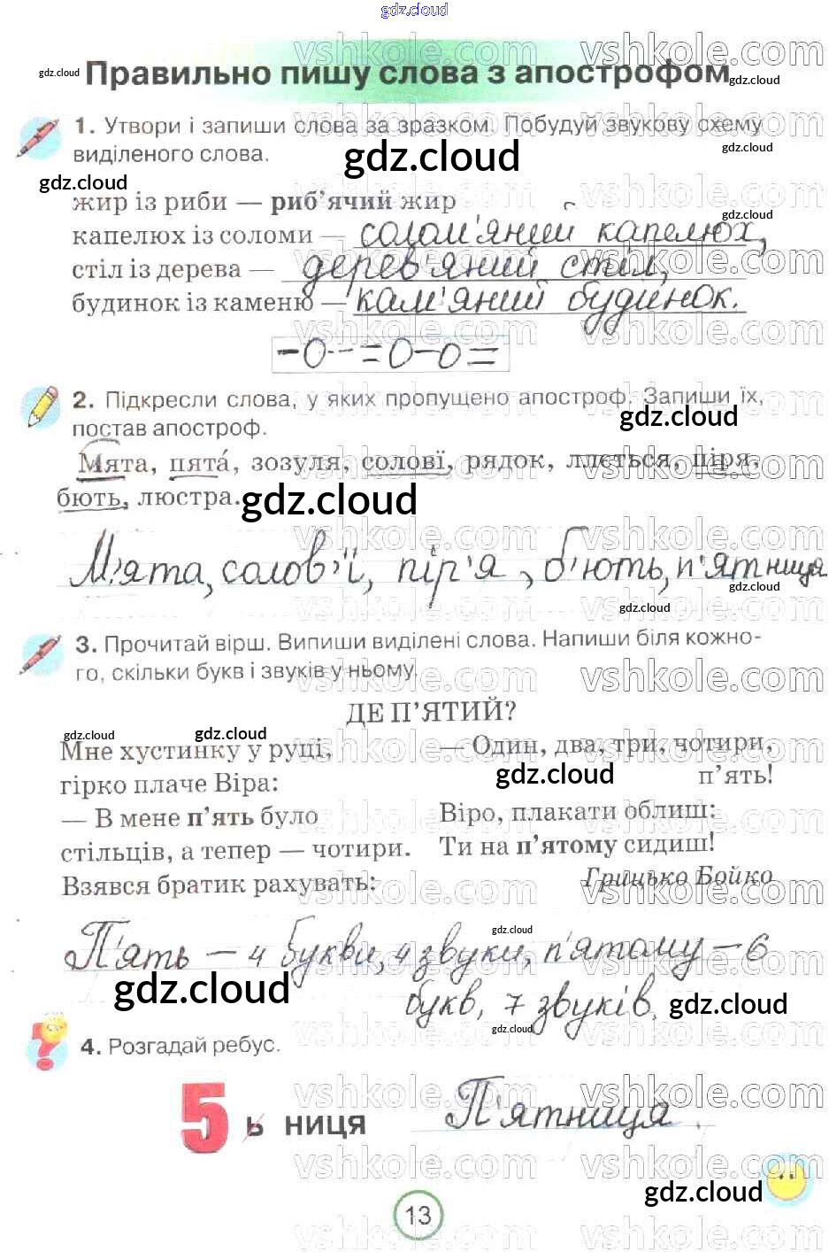 Ответ на задание 13 Рабочая тетрадь Украинский язык за 2 (второй) класс Пономарева 2019 онлайн и без номера телефона.