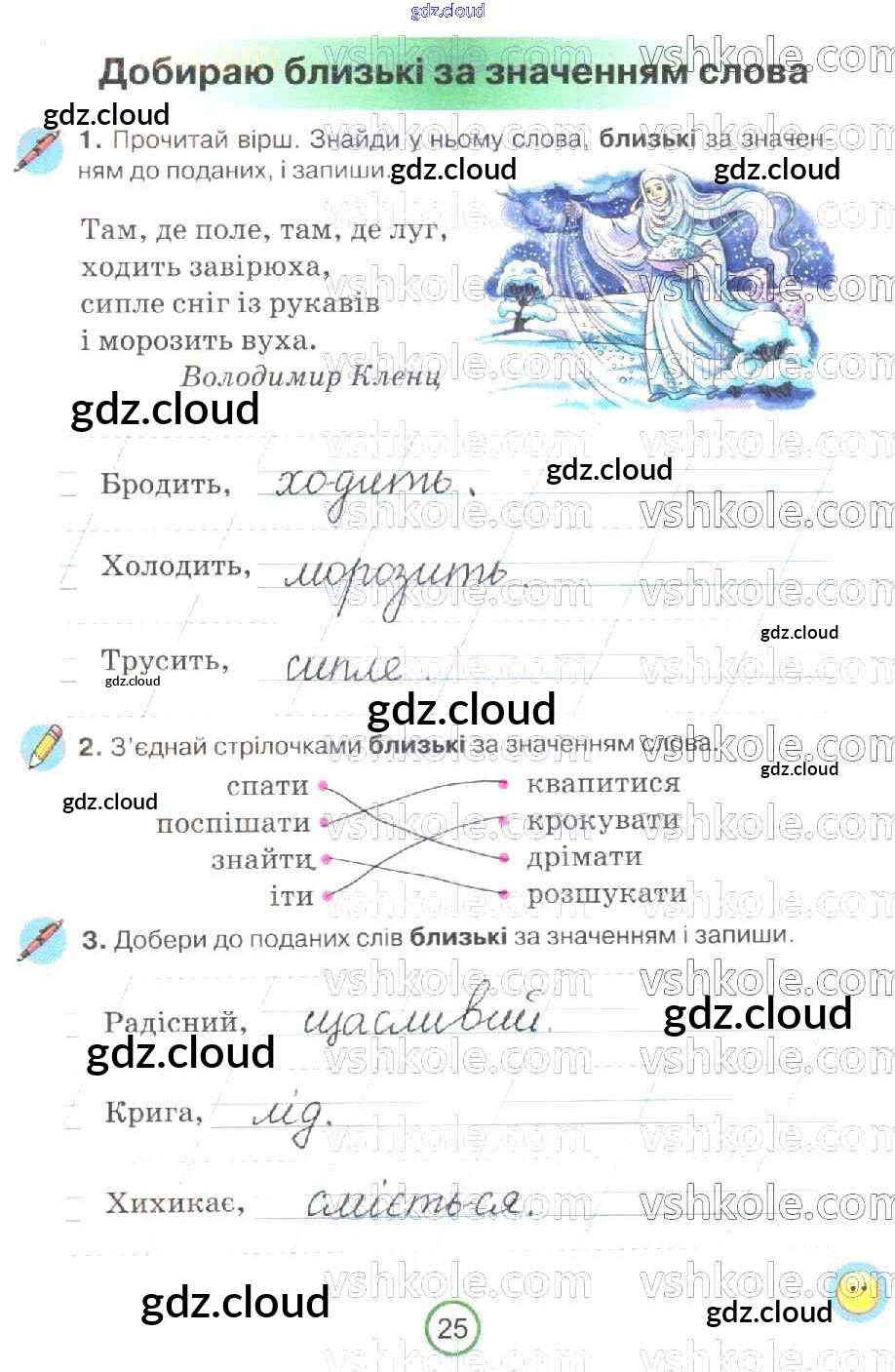 Ответ на задание 25 Рабочая тетрадь Украинский язык за 2 (второй) класс Пономарева 2019 онлайн и без номера телефона.