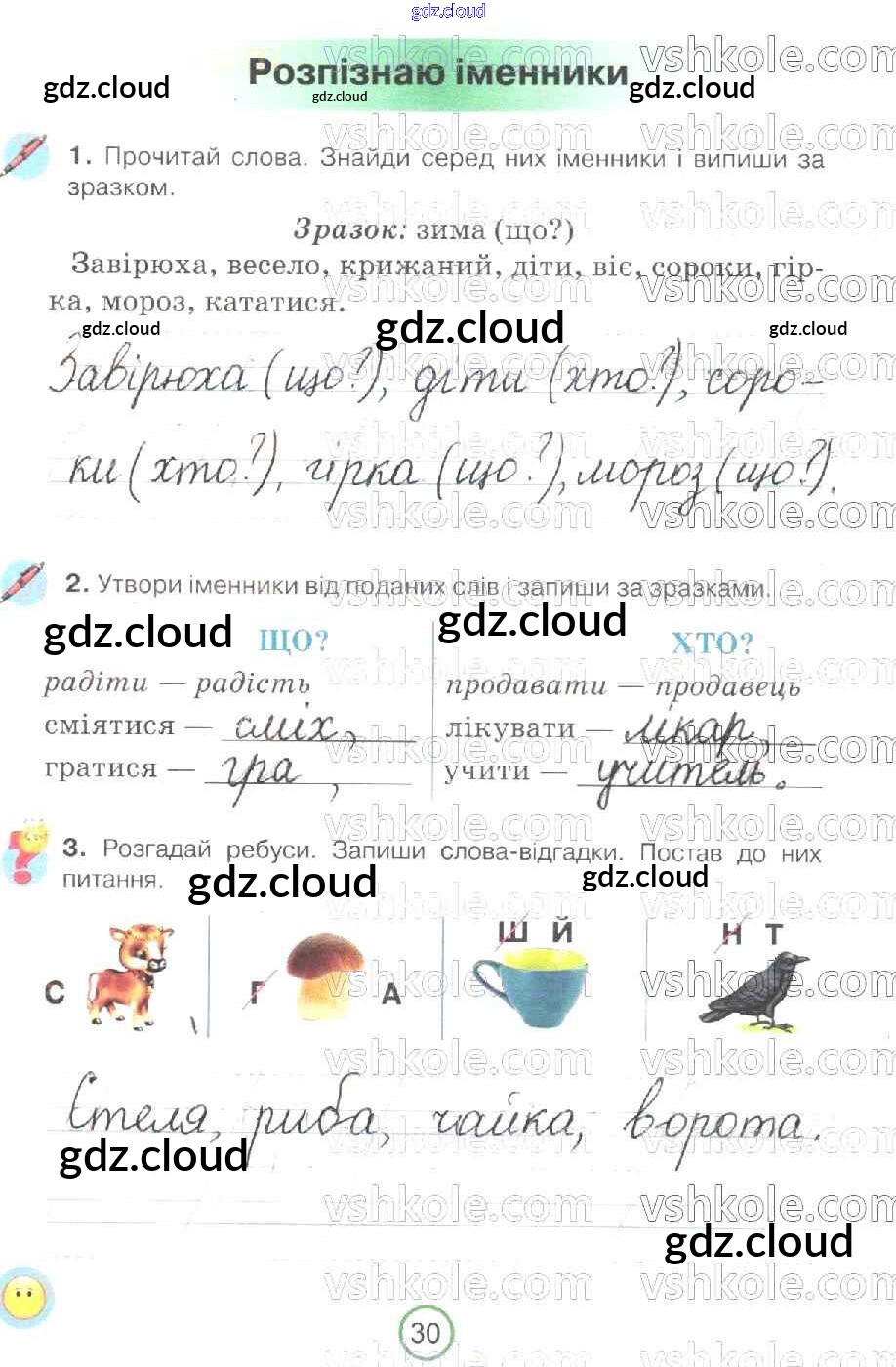 Ответ на задание 30 Рабочая тетрадь Украинский язык за 2 (второй) класс Пономарева 2019 онлайн и без номера телефона.